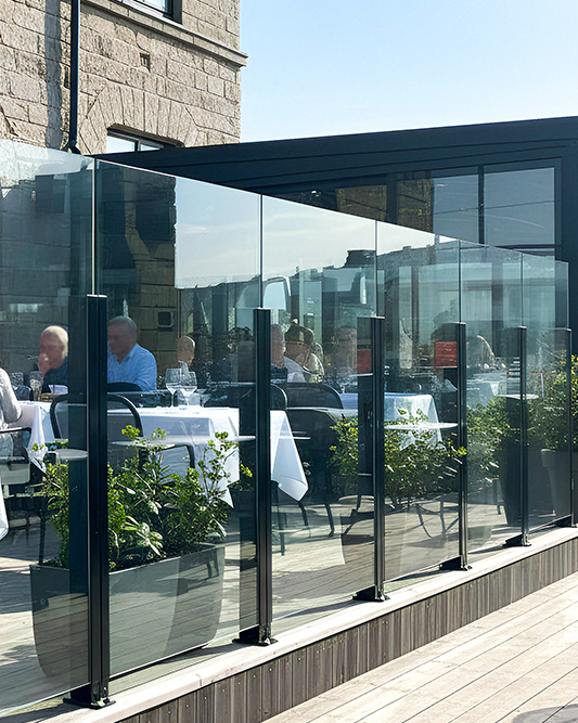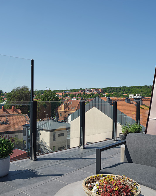 Ofrecemos barandillas de vidrio con o sin protección contra el viento, fabricadas en Suecia con enfoque en diseño, calidad, seguridad y funcionalidad. Nuestras opciones más rentables son las secciones estándar. Disponibles para nivel del suelo y balcones. Ver todos nuestros productos >>