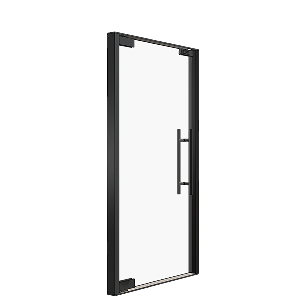Puerta batiente acristalada con bisagras pivotantes, diseñada para usarse junto con ClickitUpPlus.